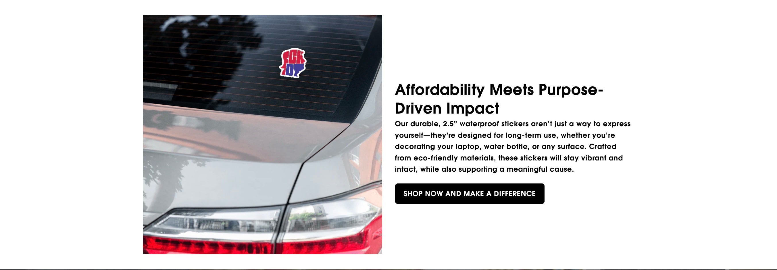 High-quality vinyl stickers in bold, vibrant colors! With a playful perspective, these stickers feature a few letters and a side view of an orange criminal who walks freely amongst us, reminding us of our embarrassing justice system.